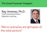 Length of video: 5:21 Here Ray shares the actual micro-scenario models. Keywords: Story-based Design Story Storytelling Microlearning Micro-learning Micro learning Small bites