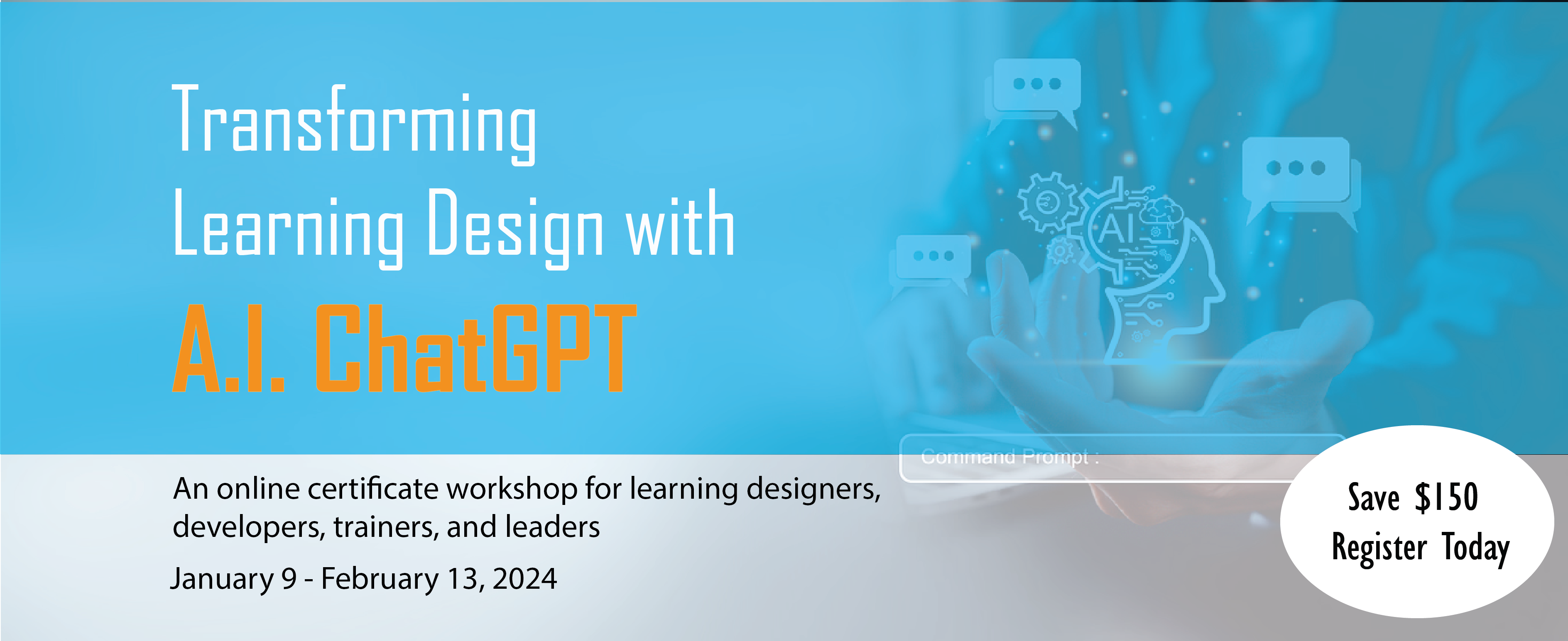 Applications: In the application aspects of the workshop, you will map the impacts of ChatGPT to ADDIE, SAM, Workflow Learning, Microlearning, Coaching, and key methods. You will also prepare investigation techniques to use ChatGPT; Identify immediate and long-term gains and risks that are not worth taking; Get a layman’s view of A.I., LLMs (Large Language Models), and ChatGPT.